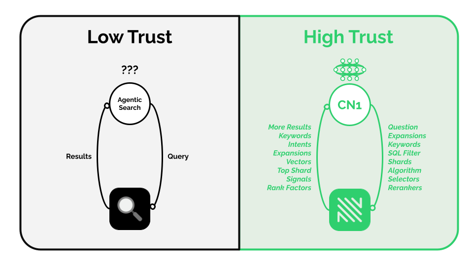Cybernaut-1 is what we call a high-trust agentic search algorithm. What that means is that Cybernaut-1 has direct access to the internal logic in NOSIBLE. Our recent blog – “The Road to Cybernaut-1: Rebuilding Search for AI” – goes into a lot of detail about what that internal logic encompasses.
